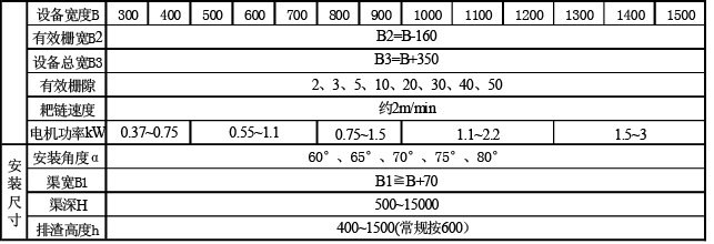 必备:渠道的宽度(或者设备的宽度)B、渠道的深度H、格栅栅隙b、耙齿材质要求、机架材质要求。