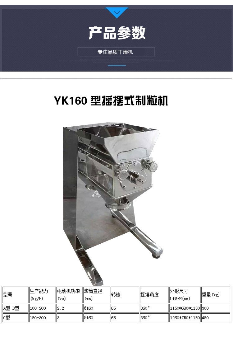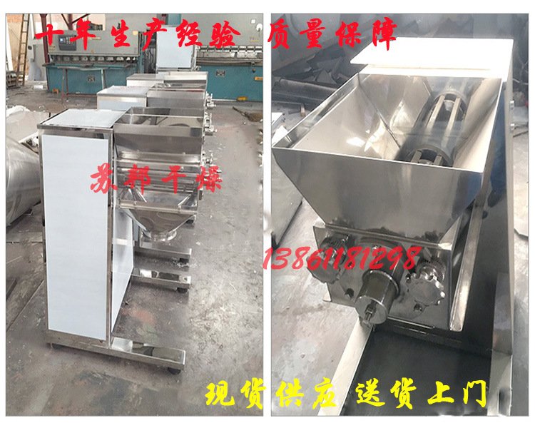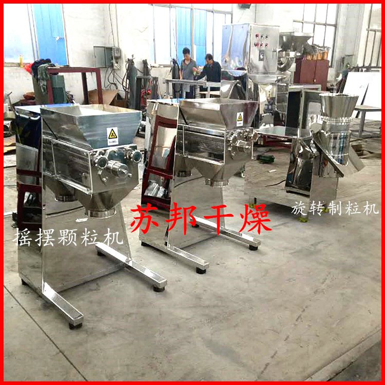 将搅拌好的物料制成所需尺寸的颗粒,或将结块状物料打成小颗粒。适应物料:本机适用于制药、化工、食品、固体饮料等行业的制粒。技术规格