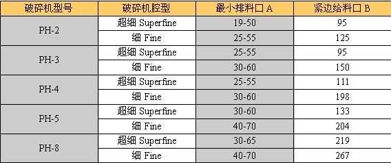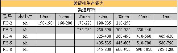 生产能力表可作为PH圆锥破碎机初步选型的工具,表中数据适用于松散密度1.6T/m3的给料、给料中筛除小于排矿粒级、开矿作业条件下的生产能力;闭路作业条件下,设备能力比开路作业高15%-30%。破碎机作为生产回路中的一个重要组成部分,其性能的发挥部分取决于给料机、皮带机、传动装置及料仓等的正确选择和操作作用。