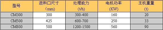 PF反击式破碎机技术参数