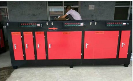 有机废气气体处用排风设备输入到光催化除臭设备后,运用高能UV紫外线光束及臭氧对恶臭气体进行协同分解氧化反应,使恶臭气体物质其降解化成低分子化合物、水和二氧化碳,再通过排风管道排出室外。