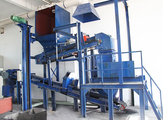 单斗提升机 (人工上料)→电动料仓→喂料皮带机→破碎机→二级皮带机→采样缩分器→样品收集器→余料返回装置