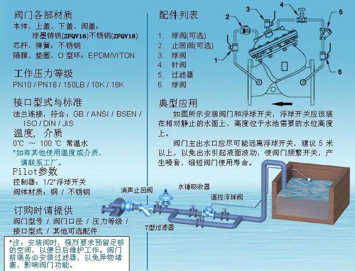 遥控浮球阀ZFQV16/ZFQV18产品参数: