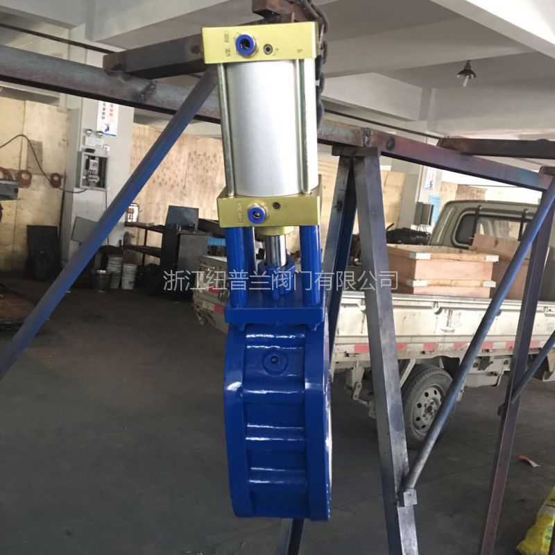 当气源从上进气口通入时,阀杆带动阀板向下运动,阀门关闭。当气源从下进气口通入时,阀杆带动阀板向上运动,阀门开启。阀板与阀座之间加载弹簧,弹簧弹力始终使阀板压向阀座保证阀门的密封性,又容许阀板在垂直上下方向移动,这有助于补偿阀门零件的热胀冷缩,并能克服任何背压变化对密封的影响与防止颗粒介质进入两密封面之间。在启闭过程中,阀板能产生自转,使得密封面之间产生研磨、抛光作用,而且由于阀体对通道偏心,在开启排卸物料时,会产生涡流,形成的物料旋涡会自行清扫阀门内腔。此阀门为双闸板单面密封,独特的下阀体斜面加镂空下阀板设计,保证阀门内腔不积灰。所有的这些特点,使得这种阀门具有超长的使用寿命,为您的系统安全运行提供了可靠的保证。