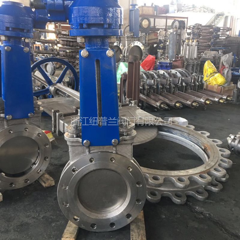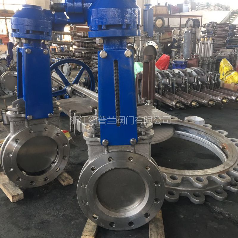 浙江纽普兰阀门有限公司>不锈钢圆形刀型闸阀PZ573W-10P涡轮硬密封刀型闸阀