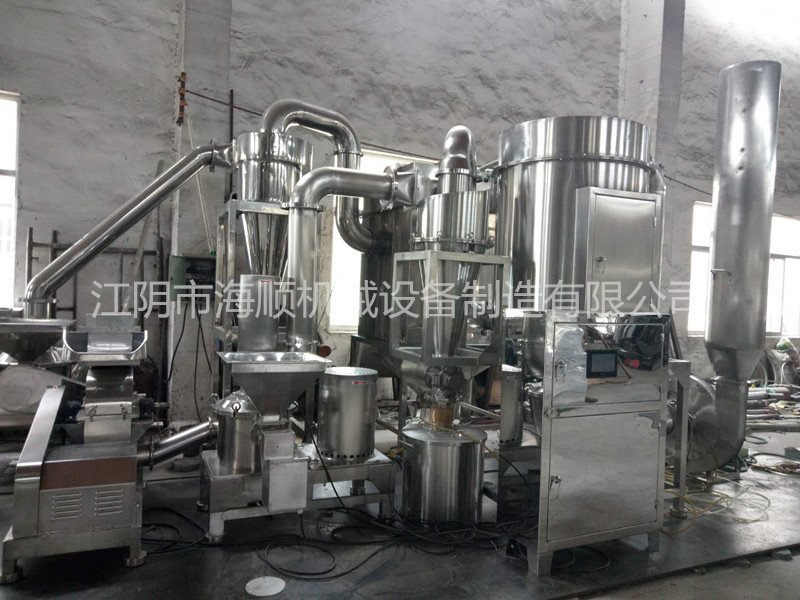 江苏粉碎机WFJ型300目食品超微粉碎机由主机、辅机、电控箱三个部分组成,设计紧凑,结构合理,具有风选式、无筛无网。机内装有分级机构,能使粉碎,分级一次完成。负压输送使粉碎作业时机腔内产生的热量源源不断地排出,故也适应于热敏性物料的粉碎。本机适用范围广,生产过程连续进行,出料粒度可调;能处理的物料如:白糖、砂糖、食盐、大米、玉米、淀粉、燕麦、面粉、大豆、豌豆、扁豆、绿豆、香辛料、香精、香料、甜味剂、干果、坚果、薯片、碎面包、可可粉、马铃薯粉、咖啡、奶粉、洋葱、脱水蔬菜、莲子、葡萄糖、燕麦壳,果壳、生姜、花椒、辣椒、胡椒、油麦、大豆、八角、桂皮等多种物料的粉碎及分级,该机已达到国际**。是粉碎,吸尘及连续出料为一体的新一代粉碎设备。