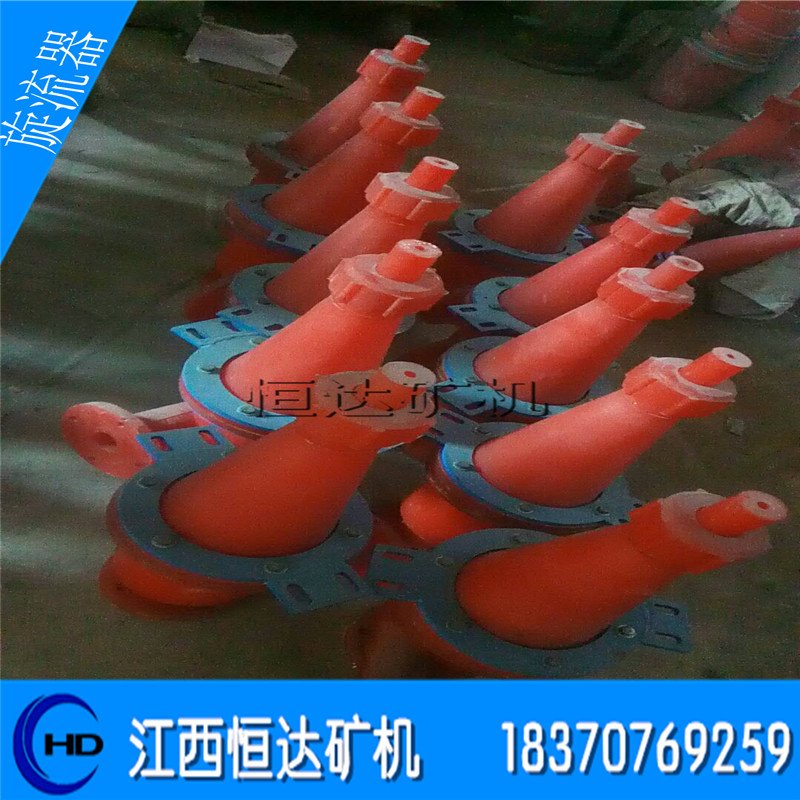 一,概述:水力旋流器是利用离心力将矿浆分级的设备,在选矿工业中主要用于分级、分选、浓缩和脱泥。水力旋流器常用作作分级设备时,分离粒度范围一般为0.3-0.01mm,主要用来与磨机组成磨矿-分级系统,在金属选矿厂中用于第二段磨矿或粗精矿再磨流程中和机械分级机组成闭路适用,以取代机检分级机;作脱泥设备是主要用于重选厂脱泥;作浓缩脱水设备可用来将选矿尾矿浓缩。该设备具有结构简单、设备费用低、生产能力大、占地面积小、基建费用、装拆和维修方便、分级粒度细、分级效率高(高达80%)等优点。它广泛应用于有色、黑色金属选矿厂、化工、制药、陶瓷等工业中。