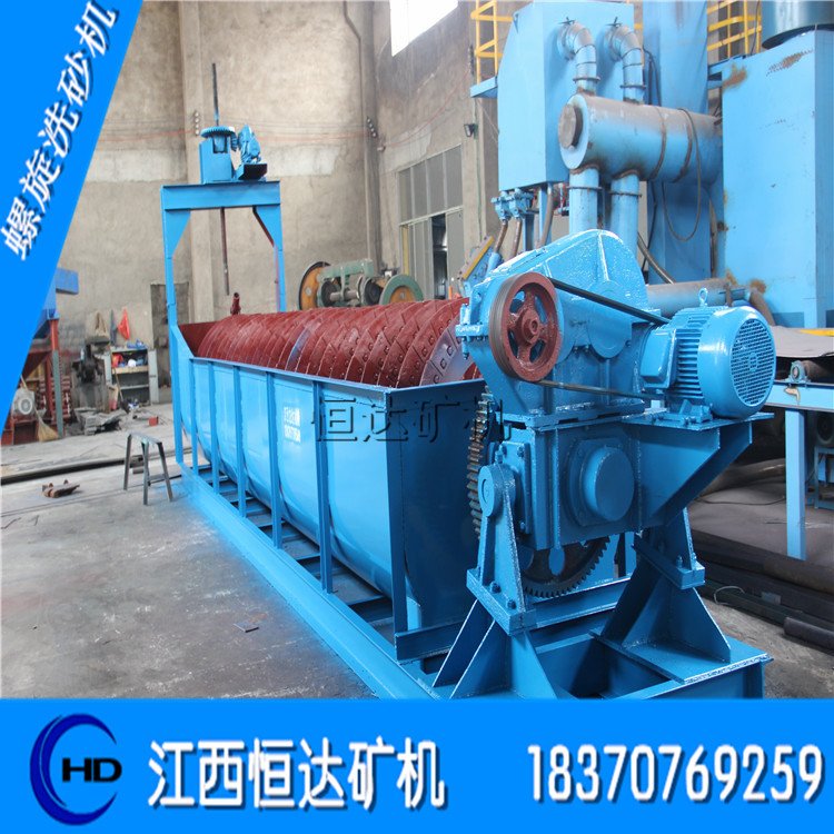 螺旋洗砂机螺旋洗砂机分为单螺旋洗砂机和双螺旋洗砂机两种,主要用于砂场,搅拌站,公路,水电,建筑等行业的洗选、分级、除杂,以及细粒度和粗粒度物料洗选等作业。具有功率消耗小、洗净度高。密封结构好、全封闭传动装置、可调式堰板,确保了 设备高效、耐用、清洗、脱水效果好、细粒产品保持稳定等特点。螺旋洗砂机介绍螺旋洗砂机是洗砂机的一种,主要通过设备内的螺旋装置对砂石料进行搅拌,从而使砂石料中的泥土与水进行混合,从设备上的流口排出,而砂石料则在螺旋装置的作用下被逐步筛选,从顶端的出料口排出,从而实现了砂石料的清洗筛选效果。螺旋洗砂机适用于砂场,搅拌站,冶金、建材、水电等行业的洗选、分级、除杂等作业,用于细粒度和粗粒度物料的洗选作业。对建筑用砂、筑路用砂石犹为适宜。螺旋砂石洗选机功率消耗小、洗净度高。密封结构好、全封闭传动装置、可调式堰板,确保了产品高效、耐用、清洗、脱水效果好、细粒产品保持稳定等特点。螺旋洗砂机适用范围螺旋洗砂机特别适用于制作磨料,耐火材料,水泥、石英砂、钢砂、炉渣粉、铜矿石、铁矿石、金矿砂、混凝土骨料、沥青骨料等多种硬、脆物料的细碎与中碎,是一种高效,节能的碎石制砂设备,比传统制砂机节能50%.螺旋洗砂机适用物料适用于中细粒度和粗粒度物料的洗选作业,用于选矿,公路,水电,建筑等行业的洗选、分级、除杂,以及细粒度和粗粒度物料洗选等作业。螺旋砂机应用领域适用于冶金、建材、水电等行业的洗选、分级、除杂等作业螺旋砂石洗选机结构合理、维修便利、处理量大、功率消耗小、洗净度高。新颖的密封结构、全封闭油浴式传动装置、可调式溢流堰板,确保了该系列产品高效、耐用、清洗、脱水效果好,细粒产品保持稳定等特点。工作原理螺旋洗砂机结构简单、维修便利、处理量大、功率消耗小、洗净度高。螺旋洗石机新奇的密封结构、全封锁油浴式传动装置、可调式溢流堰板,确保了该系列产品高效、耐用、清洗、脱水效果好,细粒产品保持不乱等特点。螺旋砂机使用维护振动筛应在筛面没有物料的情况下启动,尽量避免带料开机,筛机运转平稳后才能给料。停机前应先停止给料,待面物料排除后再停机。工作过程中应经常观察筛机运行情况,如发现运动不正常或异常声响,应及时停机检查,找出原因,排除故障。