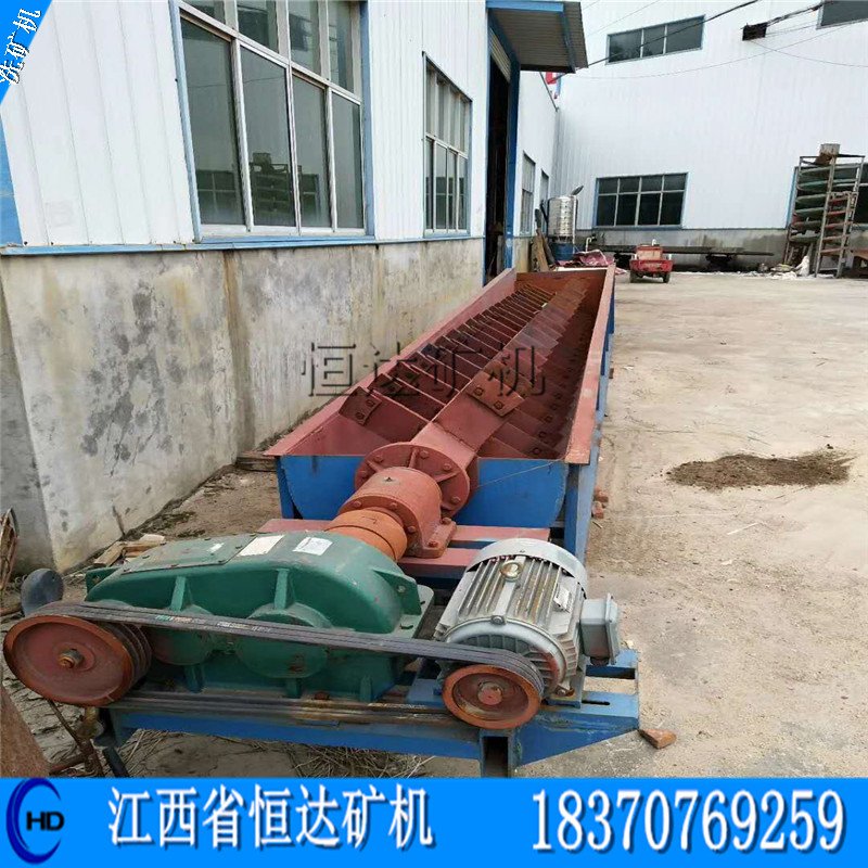 螺旋洗矿机具有,螺旋体长、密封系统好、结构简单、处理能力强、维修方便。出砂含水量、含泥量低等特点。广泛运用于各种矿石开采行业。结构:由槽体、减速机、电机、中心轴、螺旋叶片、支架组成。支架焊接在中心轴上,螺旋叶片装好后用螺栓压紧,使叶片不下垂不变形。洗矿机适用于建筑工地、砂石厂、混凝土预制厂及水电工地大量用砂石的脱泥作业,也可用于对矿石进行洗选、分级、脱水。洗矿可在擦洗机中进行,也可在筛分和分级设备中进行。安装: 螺旋洗矿机运到后,使用单位应立即检查各零部件是否齐全,有无损坏。确定机器完整无损后,方可进行安装。 使用单位应按照现场具体情况,设计洗矿机基础施工图,将洗矿机稳固的安装在结实的混凝土基础上。 安装时必须将机器按安装图的要求保证倾斜角度安装。 电动机安装在导轨上,以便调整皮带的松紧度,皮带轮与电机皮带轮在安装时应保证平行。 按上述要求调整好后,将转子盘转动几转,以检查有无卡住、碰撞现象。