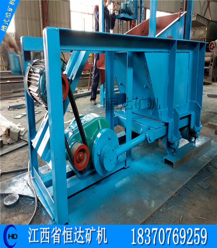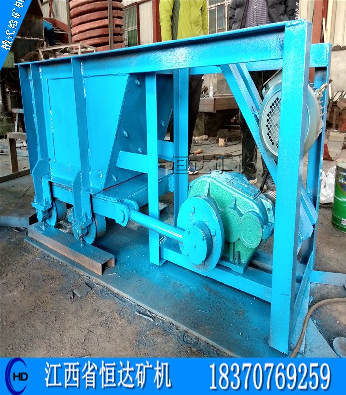 槽式给矿机详细信息:槽式给矿机可将块状物料由储料仓输送给受料装置,广泛运用于冶金、矿山、化工、建筑、选矿、煤炭等部门作为粗粒物料(原矿等)的一段破碎给料,适用于金属、非金属物料的短距离运输,但不适宜输送精矿粉及其他粉状物料。