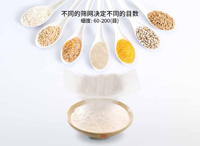 物料通过进料斗、进料口进入粉碎腔内,先在**粉碎腔内通过转动齿盘和静齿盘之间相对运动进行初粉碎,初碎物料通过转动盘上排料孔排到第二粉碎腔(外粉碎腔)内,外粉碎腔内有高速转动的锤头,高速旋转的锤头和粉碎内腔内的内齿环间相对运动和打击、撕裂、搓擦作用下将物料进行粉碎,所粉碎物料在离心力的作用下通过筛网排出到收集袋(或箱)内。粉