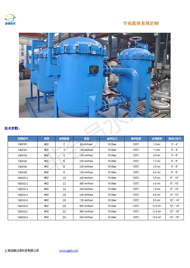 YQDSXZ4 | #02 | 4 | 160 m3/hour | 10.0bar | 120℃ | 2.0 m2 | 3” - 6” |