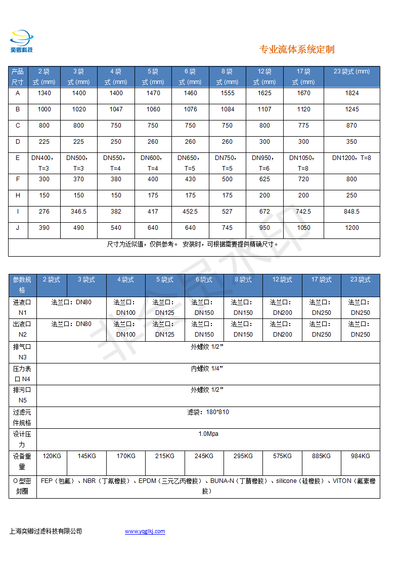 滤器型号 | 滤袋 | 滤袋数量 | 流量 | 操作压力 | 操作温度 | 过滤面积 | 进出口法兰 |