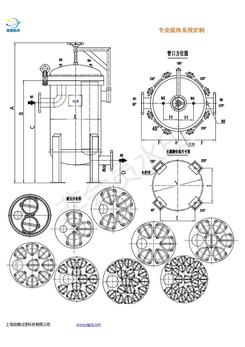 奕卿科技多袋式过滤器是一种正压式过滤装置,主要有过滤筒体、过滤筒盖和快开器构、不锈钢滤袋加强网等主要部件组成,滤液有过滤器外壳的旁侧入口管流入滤袋,滤袋本身是装置在加强网篮内,液体渗透过所需要精度等级的过滤袋即能获得合格的滤液,杂质颗粒被拦截到滤袋内,过滤基本无物料消耗。