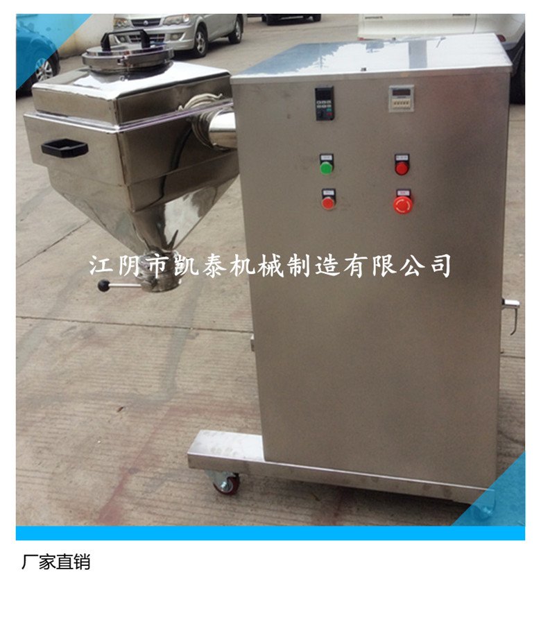 本机采用独特的方锥形混合筒体,能使物料有效的交叉混合,旋转多方位混合,混合效果好,无死角,混合均匀度可达99.9%以上