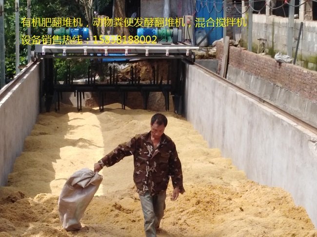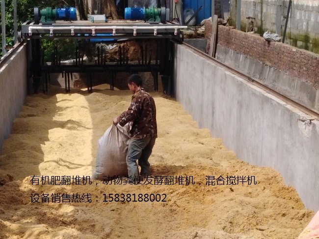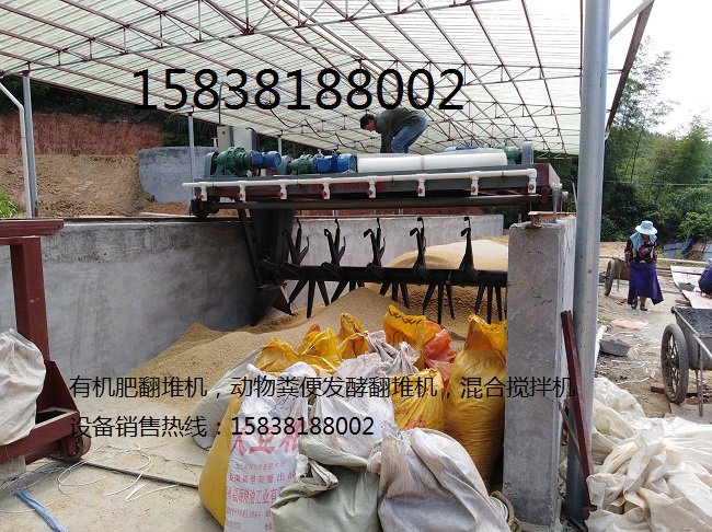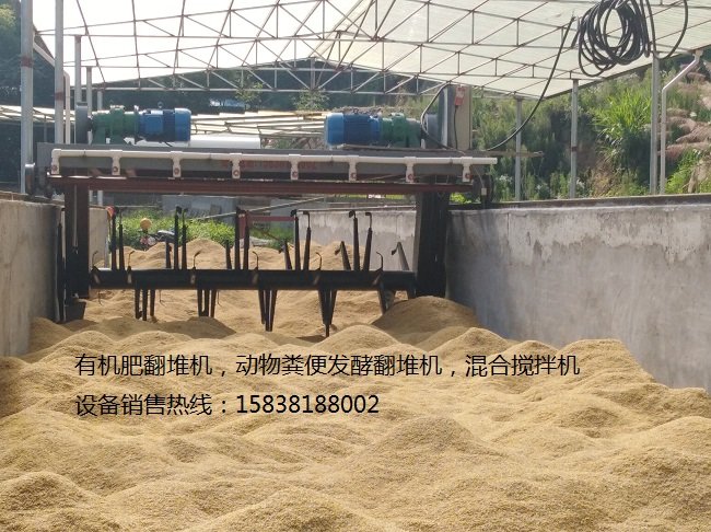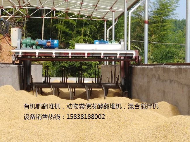 槽式翻堆机用于发酵有机肥、畜禽粪便、污泥垃圾、糖厂滤泥、糟渣饼粕和秸杆锯屑等有机废弃物的发酵翻堆,广泛应用于有机肥厂、复混肥厂、污泥垃圾厂、园艺场以及双孢菇种植厂等的发酵腐熟和去除水分作业。 槽式翻抛机适用于好氧发酵,可与太阳能发酵室、发酵槽和移行机等配套使用。与移行机配套使用可实现一机多槽用的功能。与其配套的发酵槽既可连续出料也可批量出料。效率高,运行平稳,坚固耐用,翻抛均匀。 发酵槽模式生产有机肥是一种将物料置于发酵槽内,并通过槽式翻抛机械进行翻抛、搅拌及破碎,使物料发酵、腐熟、降解的一种堆肥工艺,比静态堆肥更易取得稳定的产品性质,同时对臭味控制效果好。整体的自动化程度可以更高,节省占地。 发酵槽就是在平地上砌两堵墙,形成一个或者数个发酵槽,槽式翻抛机/槽式翻堆机在发酵槽上进行工作,通常采用电机驱动。由于槽式翻抛机滚筒的高速旋转,滚筒上的刀片对发酵槽内发酵物料进行破碎、混合搅拌,同时物料被滚筒向后翻抛并松散堆置。通过电动传动装置,翻抛机可以实现滚筒自动升降、转动。翻抛机通过移行车实现从一个发酵槽到另一个发酵槽的移行,多个发酵槽可以采用一台槽式翻堆机。该设备在环境温度为-20摄氏度~50摄氏度的条件下均可使用。对发酵物料的特性也有很强的适应性。根据发酵物料的特殊性,该设备均采用耐腐蚀等材料加工制作,技术先行经久耐用。 连续发酵槽式翻抛机采用横向行走翻堆加纵向行走的模式,实现有机物料的翻抛、搅拌及破碎,物料翻抛过后,呈现出较松散的团粒状态,使其可以好的进行耗氧发酵,该设备能耗低,生产效率高,可以大量节省人力物力。 槽式翻抛机用途及特点: 1.槽式翻抛机翻堆跨度可以达到4-12米,发酵周期15天左右。发酵槽长度视情况而定。可以每天进料口投料,另一头出料。每天投料,每天出料加工。当翻抛机翻抛完成需换翻抛段时,可升起搅龙将设备快速运行至翻抛段。 2.该机的创新点是充分利用地下空间深池设计和远距离翻堆新工艺,利用有限的地面面积使有机废弃物无害化处理规模化成为现实。 3.结构紧凑,工艺先进,利用部分有益微生物能推进畜禽粪便等有机废弃物快速腐熟的特点。采用特殊的槽式连续好氧发酵技术,使有机废弃物快速腐熟、去水、灭菌、除臭,达到无害化、资源化和减量化处理的目的,能源消耗低,产品质量稳定。 4.智能化自动控制发酵物料的翻堆过程,在纵向、横向行走机构的作用下,使发酵物料在池内产生翻堆位移,物料在池内有规律的作连续的等距离渐进后移,从而形成了一种连续的好痒发酵过程。搅刀不但翻抛均匀、充氧,还具有破碎物料的功能。 5.设备的电控系统先进可靠 ,操作方便,配置有遥控,自动、手动。主机开始运转后,然后把旋转按钮转向“自动”状态打开行走按钮,翻抛机开始工作。翻抛运行小车横向翻抛到一侧,碰住限位开关,翻抛运行小车停止行走,设备整机纵向行走3-5秒(约250-300毫米)后,翻抛运行小车开始横向翻抛至另一侧,这样往返工作达到翻抛、充氧等效果。