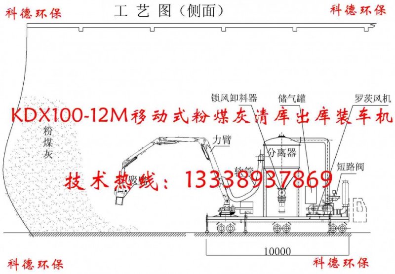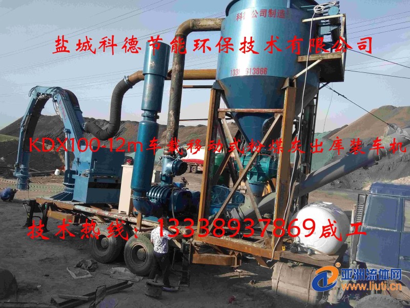 盐城科德节能环保技术有限公司生产的车载移动式粉煤灰水泥矿粉气力卸船清库出库装车机,适用于粉粒物料(粉煤灰、水泥、矿粉、电石渣、硫磺粉、氯化钾、石灰粉等等)在大型码头上的移动卸船、大型储灰库或堆场移动取料装车。