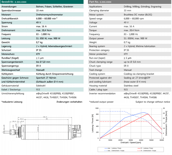 4033 DC-T ER-8是德国sycotec针对智能制造领域工业机器人浮动去毛刺设计研发的一款高速主轴电机,具有高转速,大扭矩,大功率,体积小,轻便灵活,重量轻等优点。可应用于机器人去毛刺、倒角等高速切削加工。4033 DC-T ER-8去毛刺主轴技术参数