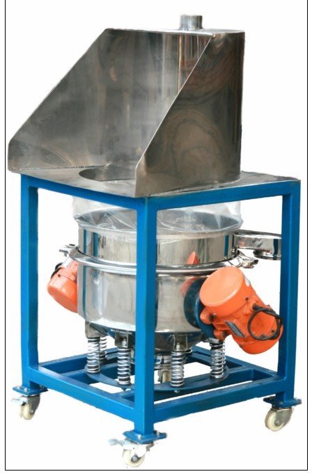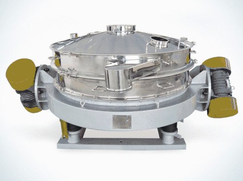 直排式有单电机和双电机两种动力布置方式,小型筛机一般都用单台振动电机,处理量比较大地筛机采用双振动电机,物料进入设备内部后,受振动源作用力在筛面上 做椭圆运动轨迹。快速并往复完成过网动作的同时,振动力能往并连续的对物料产生剥离、打散及重组的作用,从而使物料快速过网,不能过网物料则按设备运动轨 迹由筛上排料口排出,完成筛分作业过程。