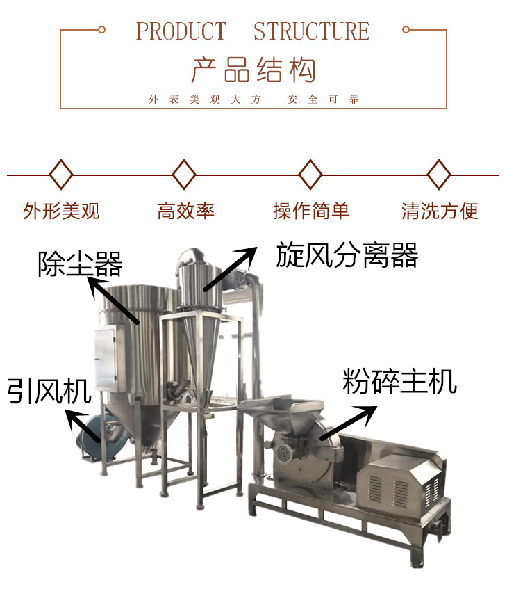 主要用途: 化工粉碎机,关风机出料脉冲除尘粉碎机,除尘式粉碎机广泛用于制药、化工、食品等行业的物料粉碎,生产进程连续进行。