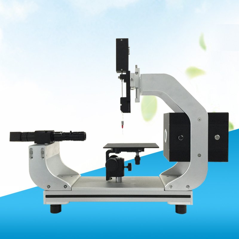 另外一种方法,并不是非要压片的非常好才可以测量。压片影响了表面粗糙度,对实际结果也有影响。因此对于视频光学接触角测量仪测量接触角,这种粉末性的物质可以采用两种方法,**种,对于疏水性比较强的物质,采用直接测量法,减少液体体积,直接测量。第二种对于接触角比较小的物质,尽量压缩成块,不必非常密实,可以直接测量,如果不好测量还有一种方法,称为捕获气泡法,将样品置于液槽之中,通过向样品鼓气泡,*后测量形成的液泡也可以计算出接触角。