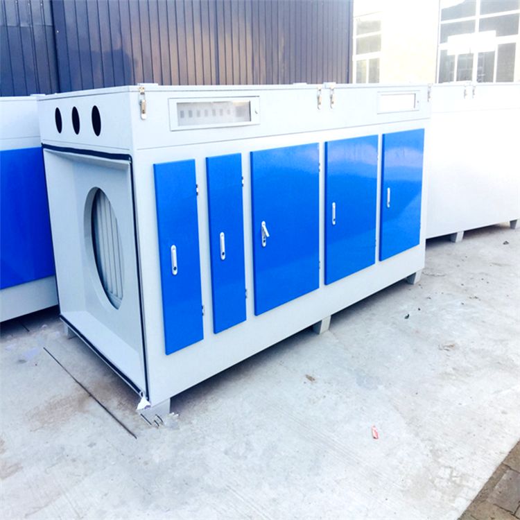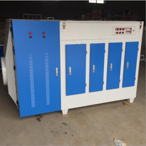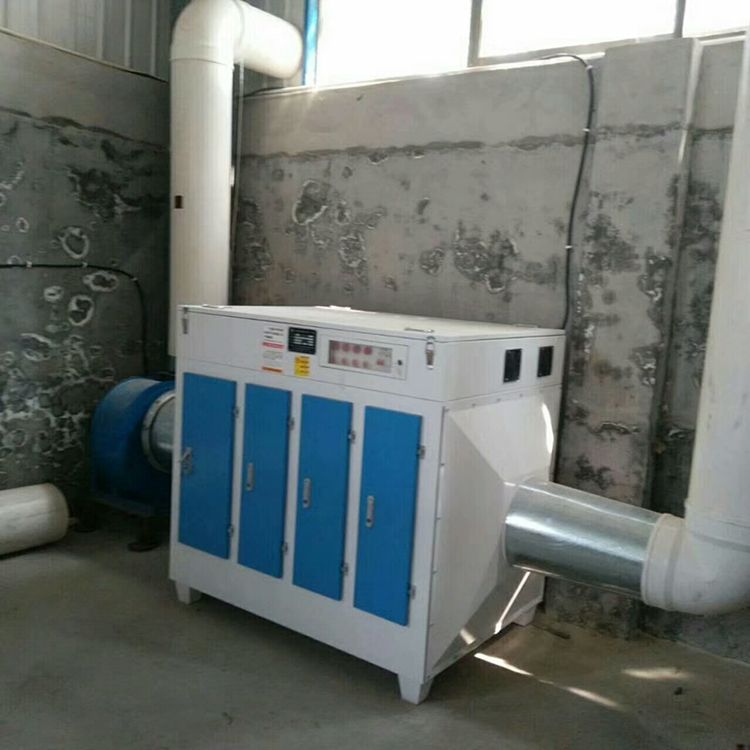 利用高能高臭氧UV紫外线光束分解空气中的氧分子产生游离氧,即活性氧,因游离氧所携正负电子不平衡所以需与氧分子结合,进而产生臭氧,众所周知臭氧对有机物具有极强的氧化作用,对工业废气及其它刺激性异味有立竿见影的清除效果。工业废气利用排风设备输入到本净化设备后,净化设备运用高能UV紫外线光束及臭氧对工业废气进行协同分解氧化反应,使工业废气降解转化成低分子化合物、水和二氧化碳,再通过排风管道排出室外