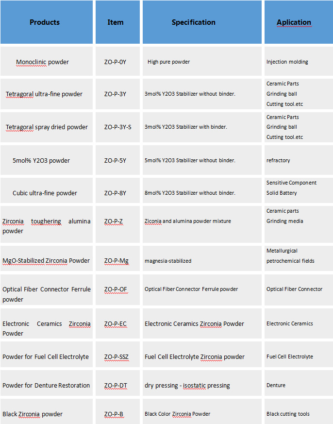 我司提供的齿科用氧化锆粉透度从35~48. 对应日本东X ZPEX/ZPEX 公司产品,详细规格型号请咨