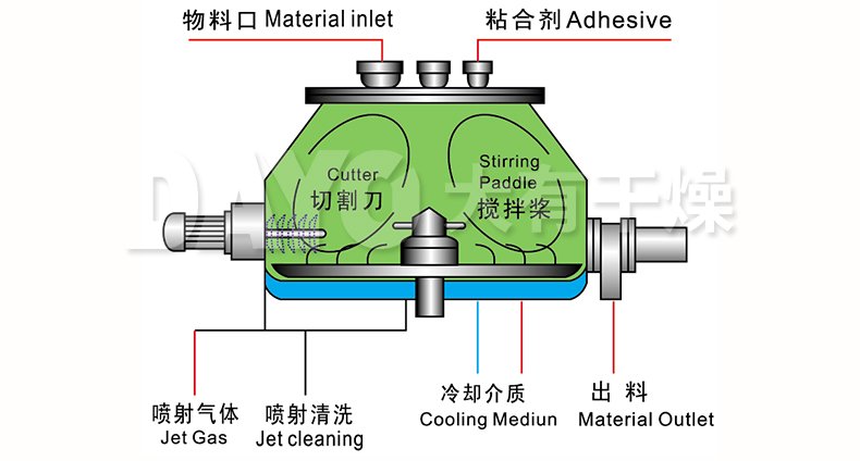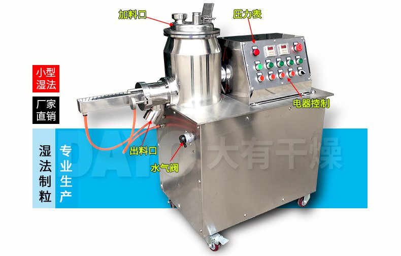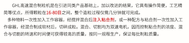 干粉混合,混合过程中可加入液体辅料,高速混合后可制粒;