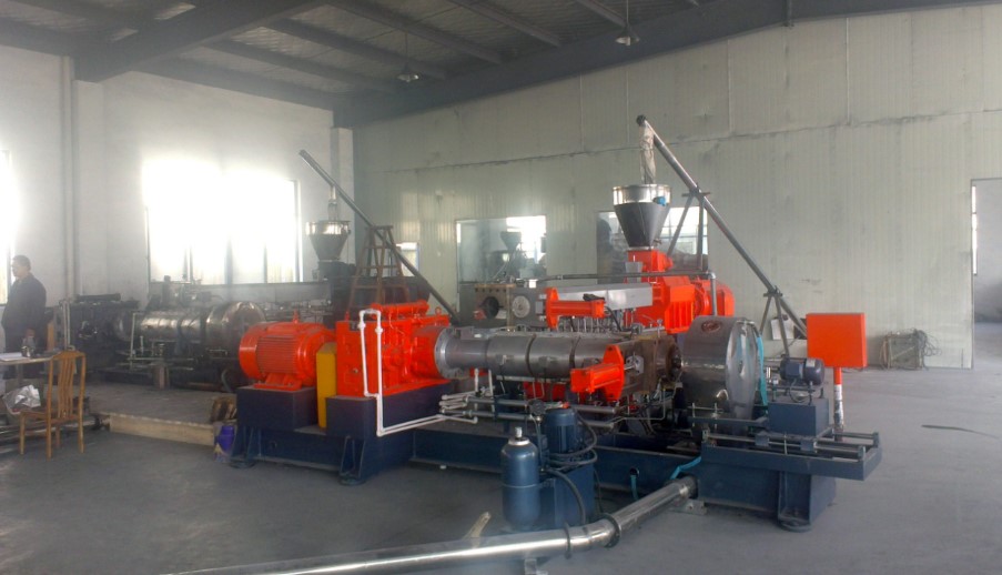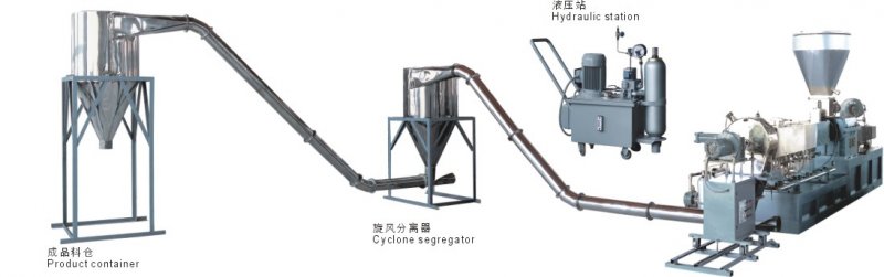 该设备可由双螺杆挤出机实现对物料的剪切、混炼, 由单螺杆挤出机完成挤出、造粒。科学
