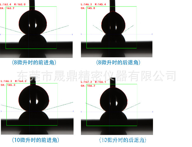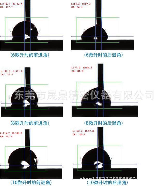 后退角:指液体在已被润湿过的样品表面进行润湿铺展,此时的接触角叫做样品的后退角