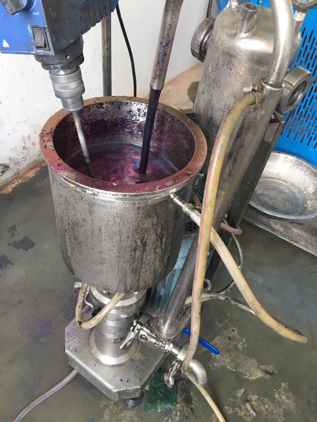 三层错齿结构的研磨转子,配合精密的定子腔。此款立式乳化机比普通的卧式乳化机的速度达到3倍以上,转速可以达到14000RPM。所以可以达到更好的分散湿磨效果。
