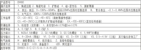 DW801通用型压力变送器测量气体、蒸汽、液体的表压和绝压,能够在过程控制的所有领用使用,DW801的先进模块化设计和智能型温度补偿使它能够应用于各种工业环境。