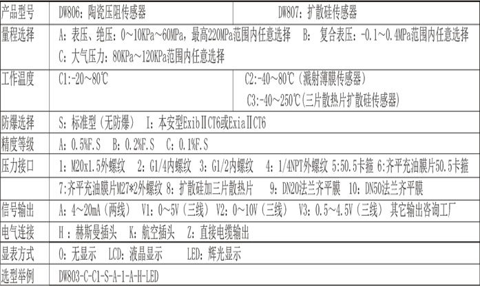 备注:当量程小于10KPa时,测量介质必须是无腐蚀的气体