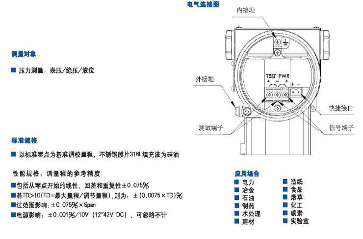 1、采用先进的单晶硅技术,通过智能处理器随时修正静压误差,提高产品精度和稳定性,消除模拟信号传输误差。