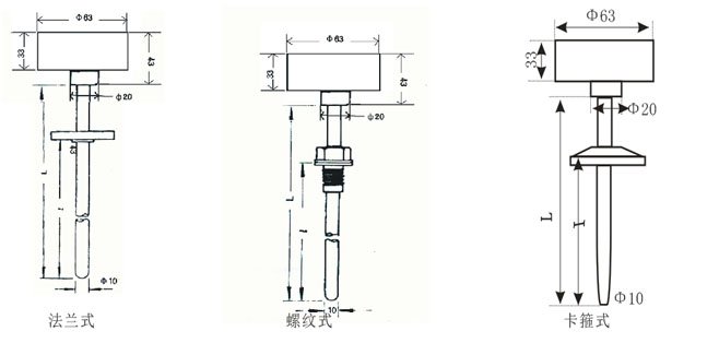 变送器用两个直径为5.5mm,中心距为标准33mm的安装孔进行安装,变送器专门设计成装在DIN樯探头外壳内,壳体应有适当的防潮防腐保护。所有电缆进线必须采用尺寸合适的电缆,并用密封。