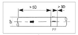 风量条系统安装在水平管道中,其安全距离汶上游直管段:5*D; 上游直管段:5*D