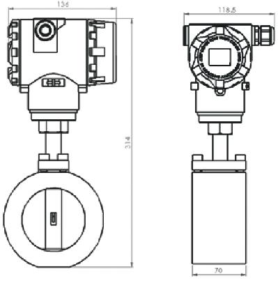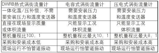 DWRB热式涡街流量计中采用一体化温度、压力补偿结构.不需要再单独加温度、压力补偿,漩涡发生体采用了硅基微机械加工技术、薄膜成型技术制作的热式流速传感器,实现了100:1的宽量程比.标准配备有LCD显示功能、模拟输出(4~20mA)、脉冲输出、瞬时流量、累积流量;另外还配置了RS485通讯功能。