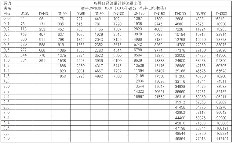 ●流量上限:44-112194kg/h;(见表1)