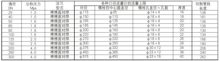 附表2 公称通径及法兰规格数据表