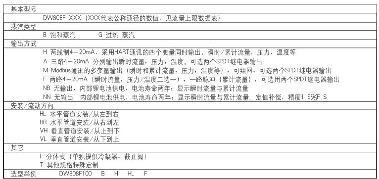 ②选择仪表型号时,应按实际工况来确定仪表的型号,蒸汽流向应与仪表指示方向一致: