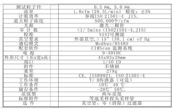 DC101系列尘埃粒子计数器设计可连续监测。同时对0.5μm,5.0μm的粒子进行监测,流速为1.0 CFM(28.3 LPM).使用Modbus/RS485通讯协议,传感器集成CIMScan监测系统,其紧凑的尺寸和重量轻安装位置的灵活性**化。DC6051符合ISO21501-4标准,并配备了2年的保修期.DC101与CIMScan监控系统是适合小环境大型设备监测。