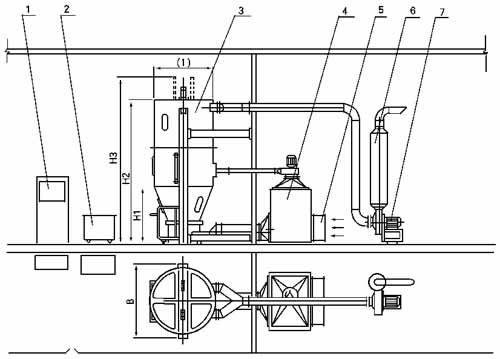 1.控制柜 2.输液小车 3.主机 4.换热器 5.亚高效过滤器 6.消声器 7.引风机 8.旋风除尘器