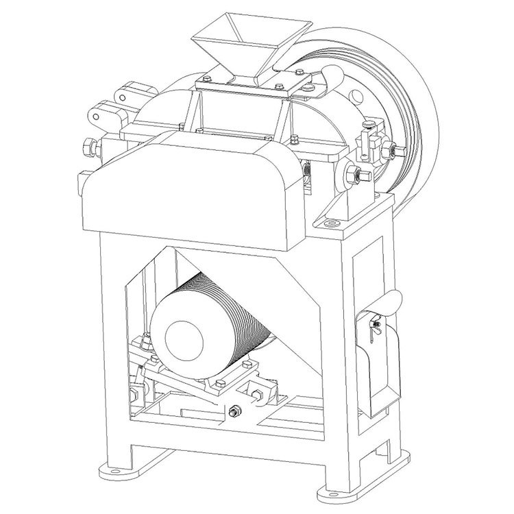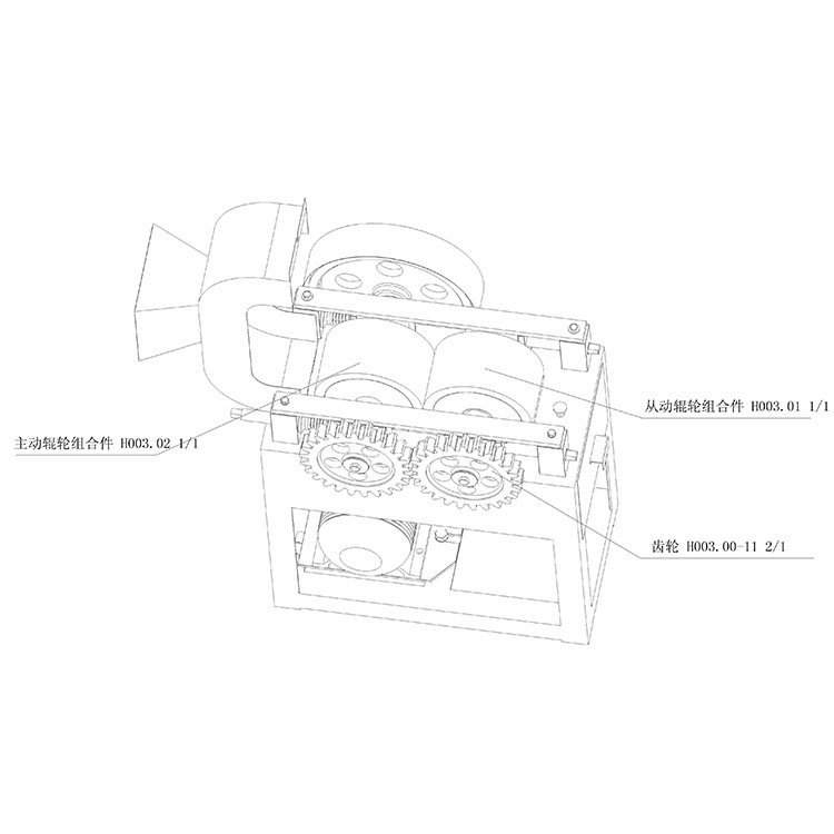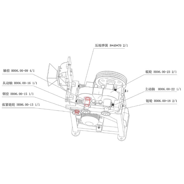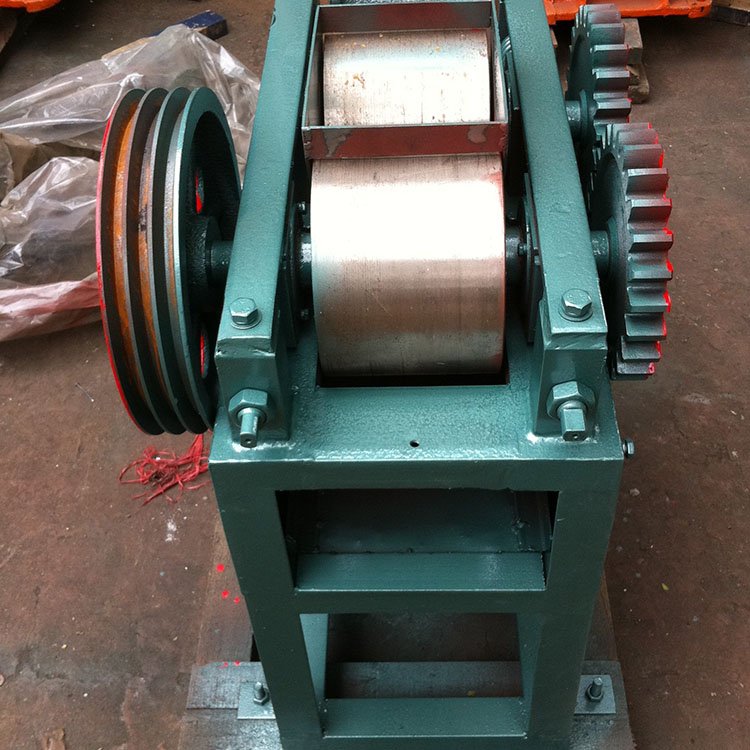 本机主要由机体轧辊与安全弹簧等部分组成,传动方式由一个封闭式电动机经三角皮带,链轮传动两个轧辊按相反方向回转,破碎物料。轧辊间隙可以在规定范围内适当调节,以控制出料粒度的大小。