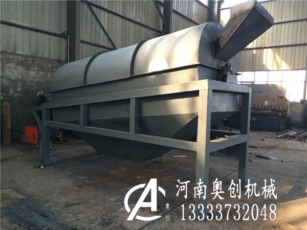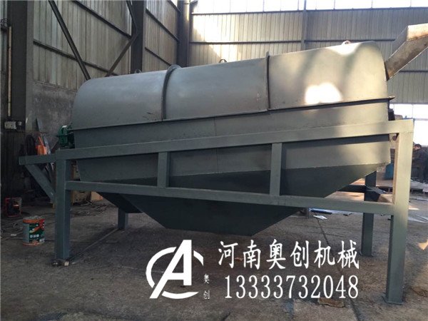 滚筒筛一般进料口比较高,出料口比较低。依靠物料自身的重力下滑在滚筒筛中筛分物料排出物料。滚筒筛中的物料在运行的过程中受滚筒筛筛筛面和摩擦力达到沿滚筒筛筛网爬升,到达一定的高度后,摩擦力小于物料自身的重力自动下滑,同时筛面有一定的倾角物料就沿着自己的运行轨迹“S”曲线式的前进。