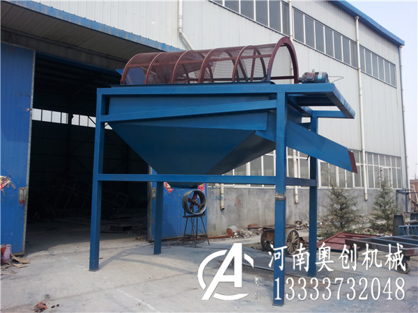 滚筒筛齿轮转动或者链条与滚筒上的齿轮咬合,电机带动链条传动或者滚筒放在两根托辊上,电机带动托辊传动。滚筒装置在驱动装置的驱动下转动,当物料进入滚筒装置后,由于滚筒装置的倾斜与转动,使筛面上的物料翻转与滚动,使合格物料(筛下产品)经滚筒后端底部的出料口排出,不合格的物料(筛上产品)经滚筒尾部的排料口排出。由于物料在滚筒内的翻转、滚动,使卡在筛孔中的物料可被弹出,防止筛孔堵塞。尤其对石英砂(硅砂)的筛分有更优的效果