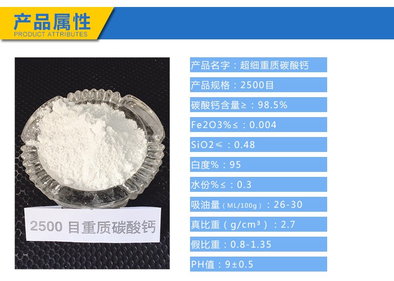 重质碳酸钙,简称重钙,是由天然碳酸盐矿物如方解石、大理石、石灰石磨碎而成。是常用的粉状无机填料,具有化学纯度高、惰性大、不易化学反应、热稳定性好、在400℃以下不会分解、白度高、吸油率低、折光率低、质软、干燥、不含结晶水、硬度低磨耗值小、无毒、无味、无臭、分散性好等优点。