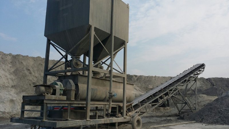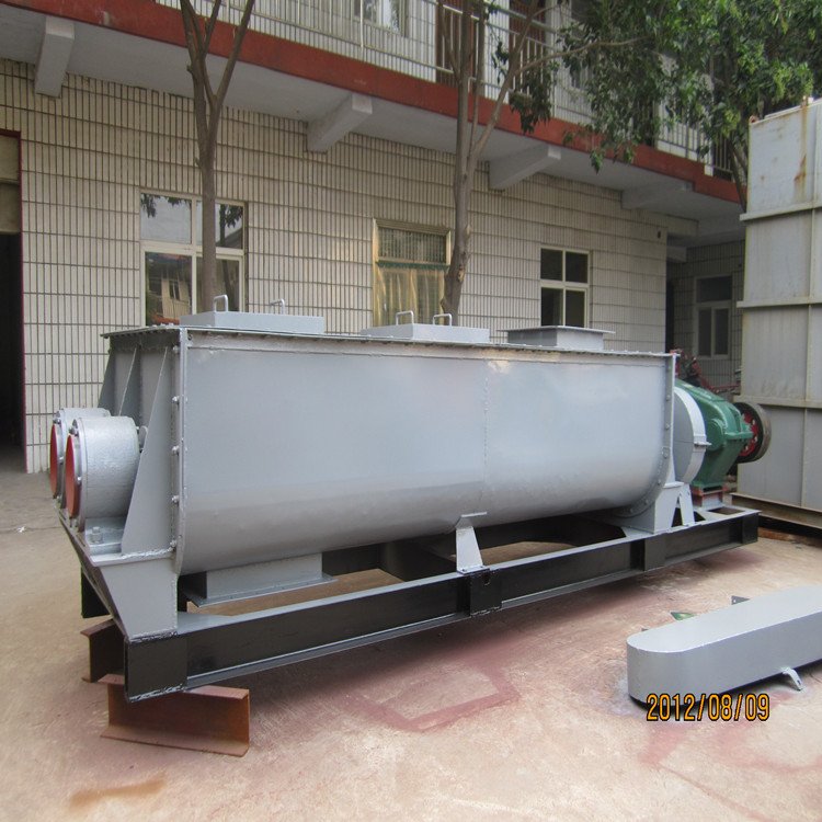 该粉尘加湿搅拌机装有两根搅拌轴,轴上以一定螺旋角及螺距分布着多片扇形搅拌叶片,且两轴上叶片交错分布;壳体侧壁装有进水管,喷管横向排布,水从进水管上的喷嘴均匀喷出,两根刚性搅拌轴反向旋转,使粉煤灰均匀搅拌、输送。该新型搅拌机在叶轮和轴承座两处进行了重大改进,克服了双轴搅拌机普遍存在的不足之处,故障率低,使用寿命更长。减速机采用摆线针轮减速机,结构紧凑、占地面积小、传动平稳、噪音低。叶片采用合金工具钢或陶瓷叶片,耐磨性好。搅拌机搅拌均匀,运行可靠,操作维修方便。