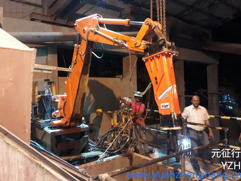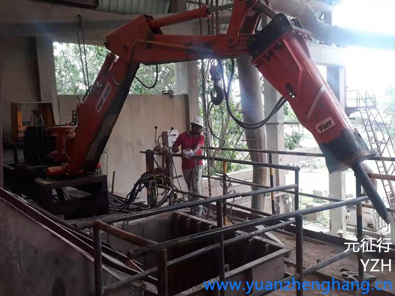元征行品牌的料口破碎机械臂,主要应用于露天采石场格筛口,地下矿山溜井机入料口,砂石骨料场移动式破碎站以及破碎机的进料仓口,冶金炉,铸造厂和码头装卸场等。