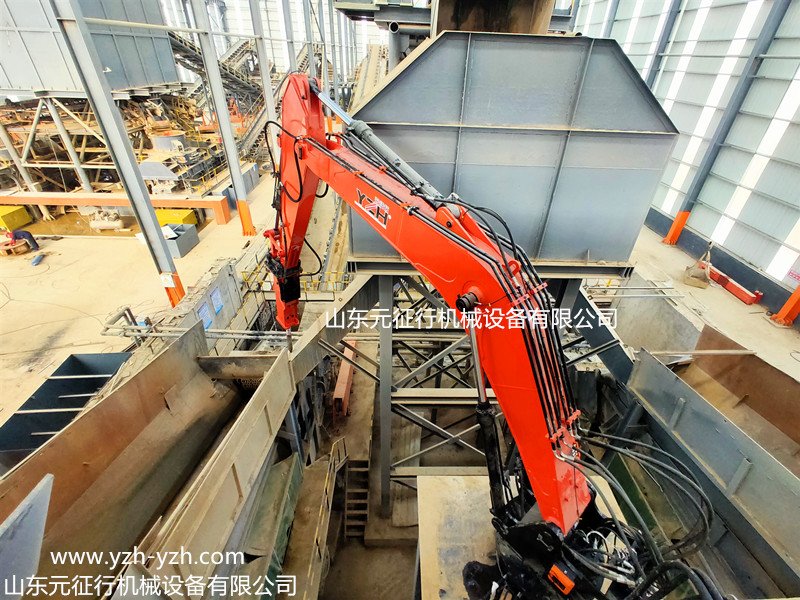 料口破碎机械手可固定在料仓一侧,既能破碎料仓、给料机及机口处大的石料,又能替代危险性高的人工手动清理,确保生产顺畅,提高生产效率,本产品采用小功率电机控制,其耗电少、生产成本低、高效增产、实用性强,可根据要求配备空调,操作简单,环境舒适,是辅助破碎机料口矿石破碎给料的理想设备。