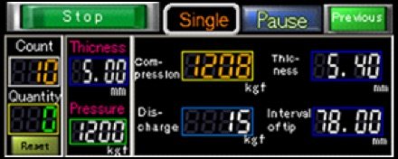 输入压片压力/片厚和压片数量,它将自动连续运行,如改变压力,也只需在触摸面板上修改设定值。